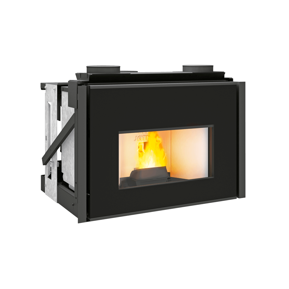 Dieser Pelleteinsatz verfügt auch über einen Heißluftkanal, durch den der Kamin die Heißluft bis zu 10 m vom Einsatz entfernt ""kanalisieren"" und in andere Räume oder Flure des Hauses transportieren kann.